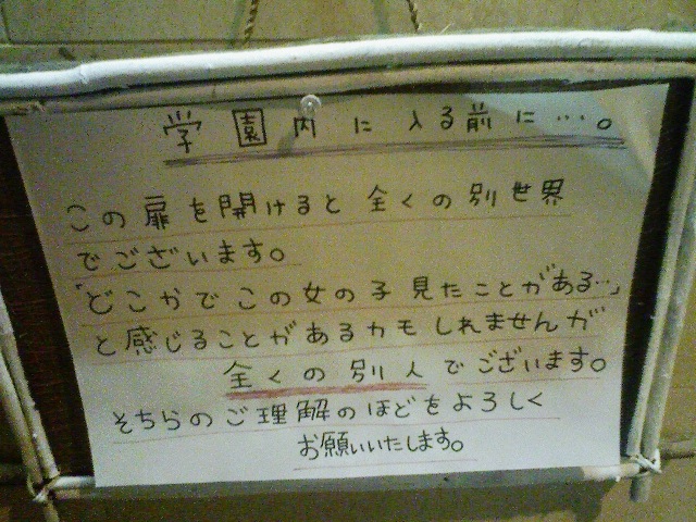 閉鎖的というイメージを作ってしまった事は、事の経緯を見て来ている限りでは仕方のない事だったのかもしれないけど、今ではそれが少しマイナスになってしまったのかなぁと少し寂しい。しかし、アニソンライブや野外イベント、季節ごとのイベントなど地道なオタク的恒例行事も良く行われていて、そう言う面が前面に出てこない事が少し惜しい。