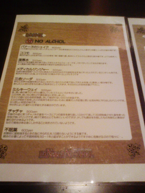 予算:最低480円(ドリンク)より、平均1000円前後。いわゆるチャージ料はかからない。
